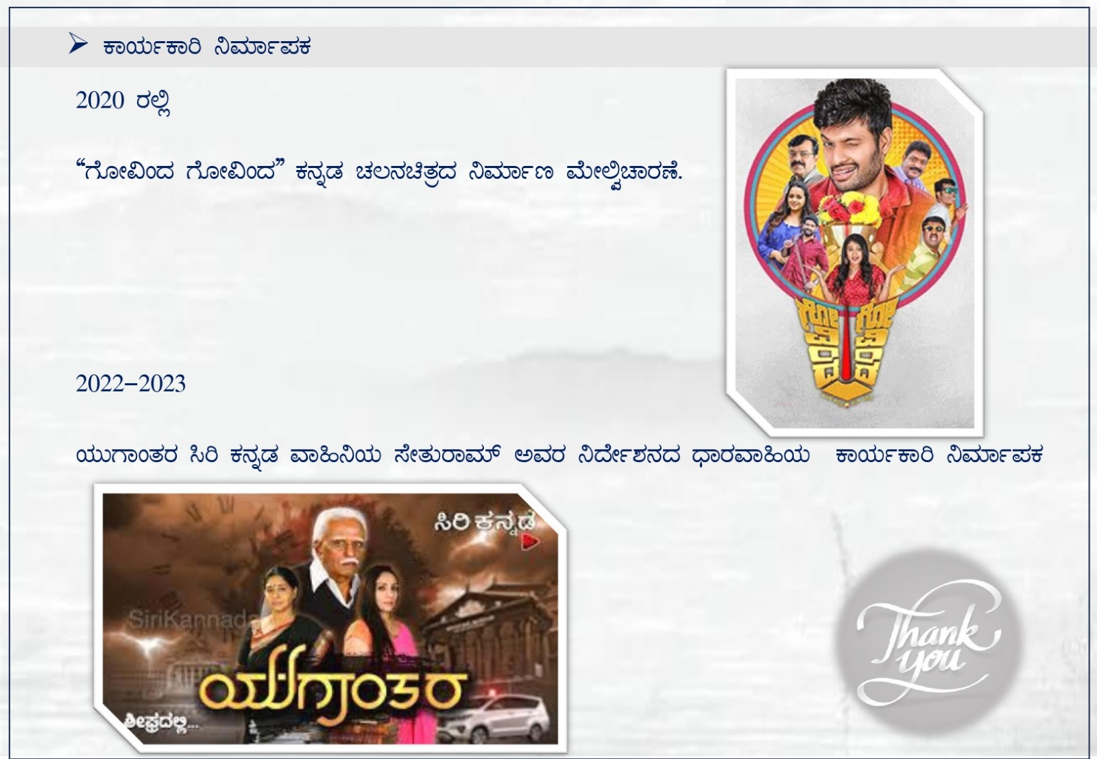 - Worked with notable producers like Dharmaveer Kempegowda.